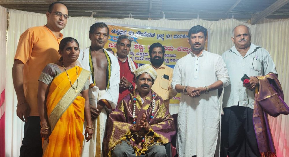 The seasoned jester of the famed Pavanje Yakshagana Mela, Balakrishna Maniyani Mawwaru, had long carried the weight of worry on his shoulders. But on this momentous day, under the guidance of the Yakshadhruva Patla Foundation Trust, those burdens were lifted, replaced by the warmth of gratitude and the promise of a secure future. A new dawn broke for Balakrishna, as the Trust unveiled a magnificent dwelling, the 20th in their Sridevi Nilaya Yakshanugraha initiative. This gift, a testament to the Foundation’s unwavering commitment to artists, was a tangible expression of their deep appreciation for the laughter and joy Balakrishna had brought to countless hearts through his years of dedication to Yakshagana. The Foundation’s esteemed founder, Patla Sathish Shetty took the stage, his words, imbued with the profound significance of the occasion, echoed through the air, resonating with the spirit of generosity and the enduring legacy of Yakshagana.