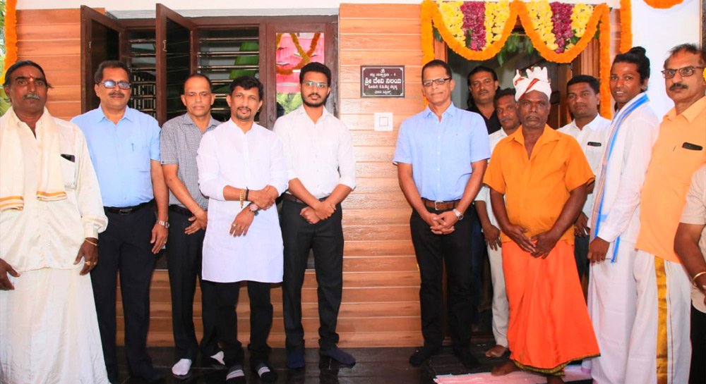 Founder K.D Shetty of Bhavani Shipping, as part of the Yakshaashraya scheme by Yakshadhruva Patla Foundation Trust, formally presented the sixth house to Sri Chandrahasa (Chunni) Pujari of Ammunje. The house key was handed over by Mr. Ravi Shetty, Mangaluru Branch Manager of Bhavani Shipping, with the presence of Shri Patla Satish Shetty, Founder Chairman of Yakshadhruva Patla Trust. During the ceremony, P.W.D. Contractor Mr. Abubakar and Civil Engineer Mr. Namaz Nawaz, who assisted in constructing the house, were honored. Notable figures like Shri Purushotham K. Bhandari, Shri CA Sudesh Kumar Rai, Shri Umesh Bhandari, Shri Vamana Acharya, Shri Chidananda Gurikara, Shri Ishwara Pujari, Shri Ramesh Ammunje, Shri Mohana Ammanje, and Vaishakh Shetty were present. Shri Janardhana Ammunje conducted the program.