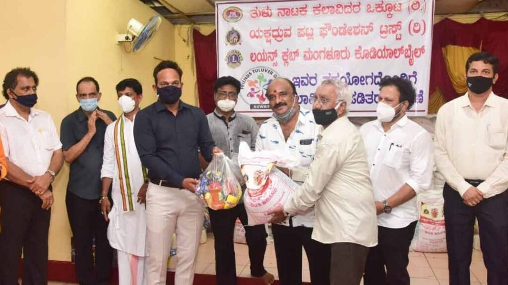 Mangaluru, Jun 12: Grocery kits were distributed to drama artistes under the joint auspices of Tulu Nataka Kalavidara Okkuta Regd, Yakshadhruva Patla Foundation Regd, Lions Club Mangaluru Kodialbail and Friends Tuluver Kuwait on Saturday June 12 at the Gokul...