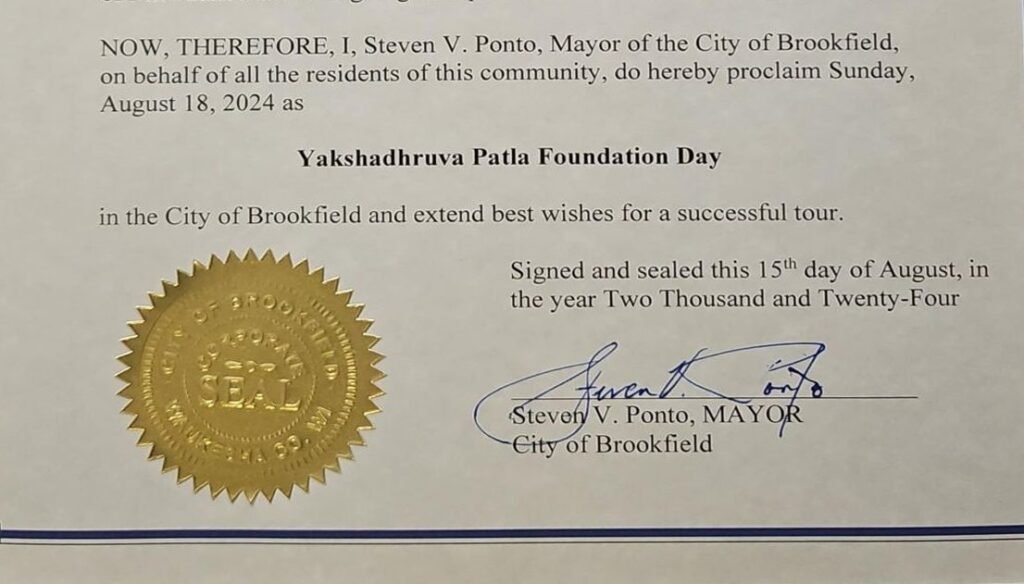 ವಿಸ್ಕಾನ್ಸಿನ್ ರಾಜ್ಯದ ಬ್ರೂಕ್ಫೀಲ್ಡ್ ನಗರದಲ್ಲಿ ನಡೆದ ಯಕ್ಷಗಾನ ಕಲೆಯನ್ನು ಹಾಗೂ ಪಟ್ಲ ಫೌಂಡೇಶನ್ ಕೈಗೊಂಡಿರುವ ಮಹಾನ್ ಕಾರ್ಯವನ್ನು ಶ್ಲಾಘಿಸಿ ಅಲ್ಲಿಯ ಮೇಯರ್ ಸ್ಟೀವನ್ ವಿ ಪೋಂಟೋ ಅವರು ಕೂಡ ಆಗಸ್ಟ್ 18ನೇ ತಾರೀಕು ಬ್ರೂಕ್ಫೀಲ್ಡ್ ನಗರದಲ್ಲಿ ಯಕ್ಷಧ್ರುವವ ಪಟ್ಲ ಫೌಂಡೇಶನ್ ಡೇ ಎಂದು ಘೋಷಿಸಿದ್ದಾರೆ.