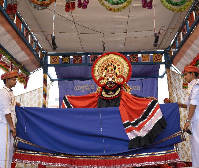 The Patla Sambhrama hosts a two-day student Yakshagana competition with specific rules: each team must comprise a minimum of 10 artists, performances are limited to 45 minutes, and background musicians may include outsiders. This competition welcomes troupes from both styles: Tenkuthittu and Badaguthittu. Distinguished by their makeup, costumes, and dance intricacies, these styles contribute to Yakshagana’s rich tapestry, preserving tradition and beauty while ensuring the continuity of the art form.